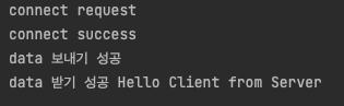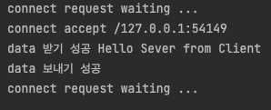 연결 요청 대기, 요청, 수락, data 주고 받기가 성공되었다.