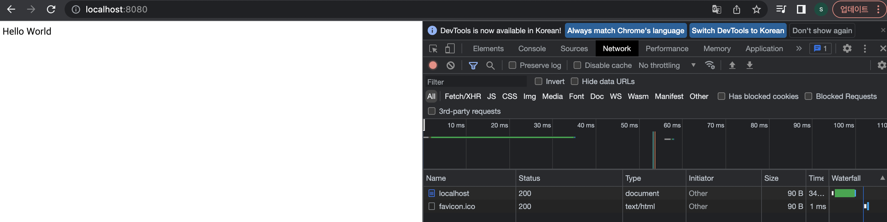 로컬 환경에서 프로그램 실행 후 브라우저 주소창에 localhost:8080/index.html을 입력해보자.