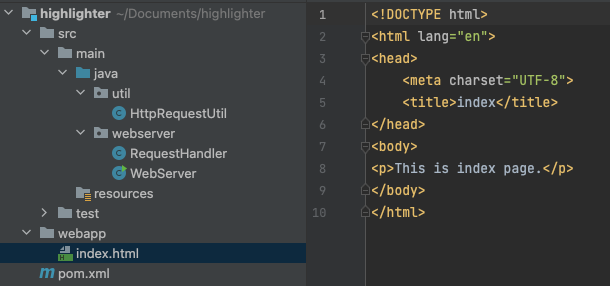 http://localhost:8080/index.html로 접속했을 때 webapp 디렉토리의 index.html 파일을 읽어 클라이언트에 응답하라
