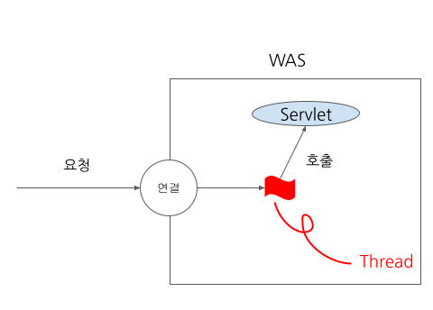 - 쓰레드는 요청에 매핑된 서블릿을 호출