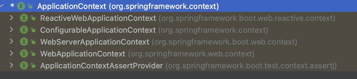 ApplicationContext를 상속받은 인터페이스들과 그 인터페이스들의 구현체들이 있다.